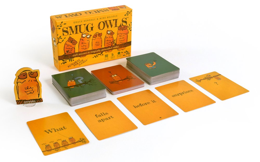 In Smug Owls, race to craft answers to never-before-seen riddles created by a magic deck. Your answer can be anything—funny, punny, clever, profound, nonsensical, you name it.