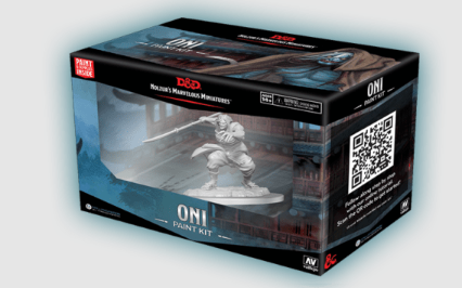 “Paint Night Kit!” These kits include a miniature, premium Vallejo paints, a set of brushes, water pot and blister pack that doubles as a palette — everything you need to complete the painting experience.