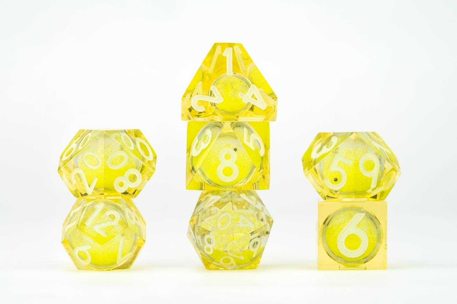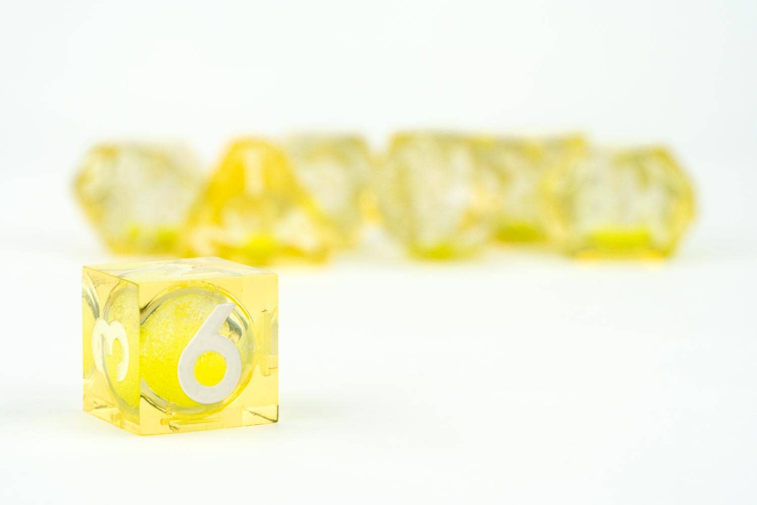 New Shadow Light Liquid Core Dice were developed especially for maximum black light reaction with our Shadow Light Dice Tray. These dice have a fun snow globe effect on the table and then when the black light hits they glow an incredible bright neon green color that is sure to kick any game to the next level. Gamers love black lights and FanRoll is thrilled to introduce the newest innovation in black light technology.