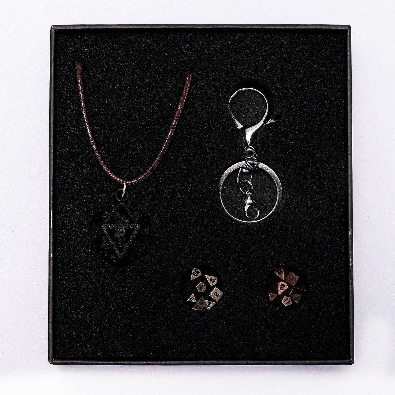 Locket holds two sets of mini metal dice and can double as a keychain. HY00344