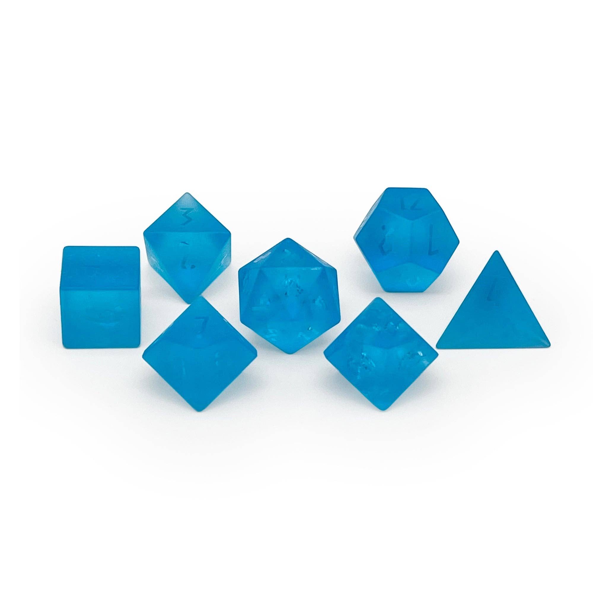 * Caught in the middle of an Ice Age, everything the eye can see is covered in a disorienting blanket of white. All life is now hanging on by only a thread. The only source of sustenance is to steal, combat, or even kill. In an environment where the undead and the cold-blooded monsters thrive, protect yourself from all evil with this frosted Amethyst dice set. As icy and rock hard as your enemy’s soul, this dice set is the perfect trick to have up your sleeve as you navigate through the frigid, bitter desert. Carved in frosted K9 glass, this polyhedral dice set boasts an icy, frozen look that will leave anyone mesmerized. * Hand-carved dice - made with genuine K9 Glass. Due to this, please allow for slight Dice and Number variations. Features a hidden bright purple Luxurious design with raised number engravings Set includes 7 polyhedral dice (d20, d12, 2x d10 (00-90 and 0-9), d8, d6, and d4) Great for all role-playing (RPG) games including Dungeons and Dragons, Pathfinder, Savage Worlds, GURPS,
