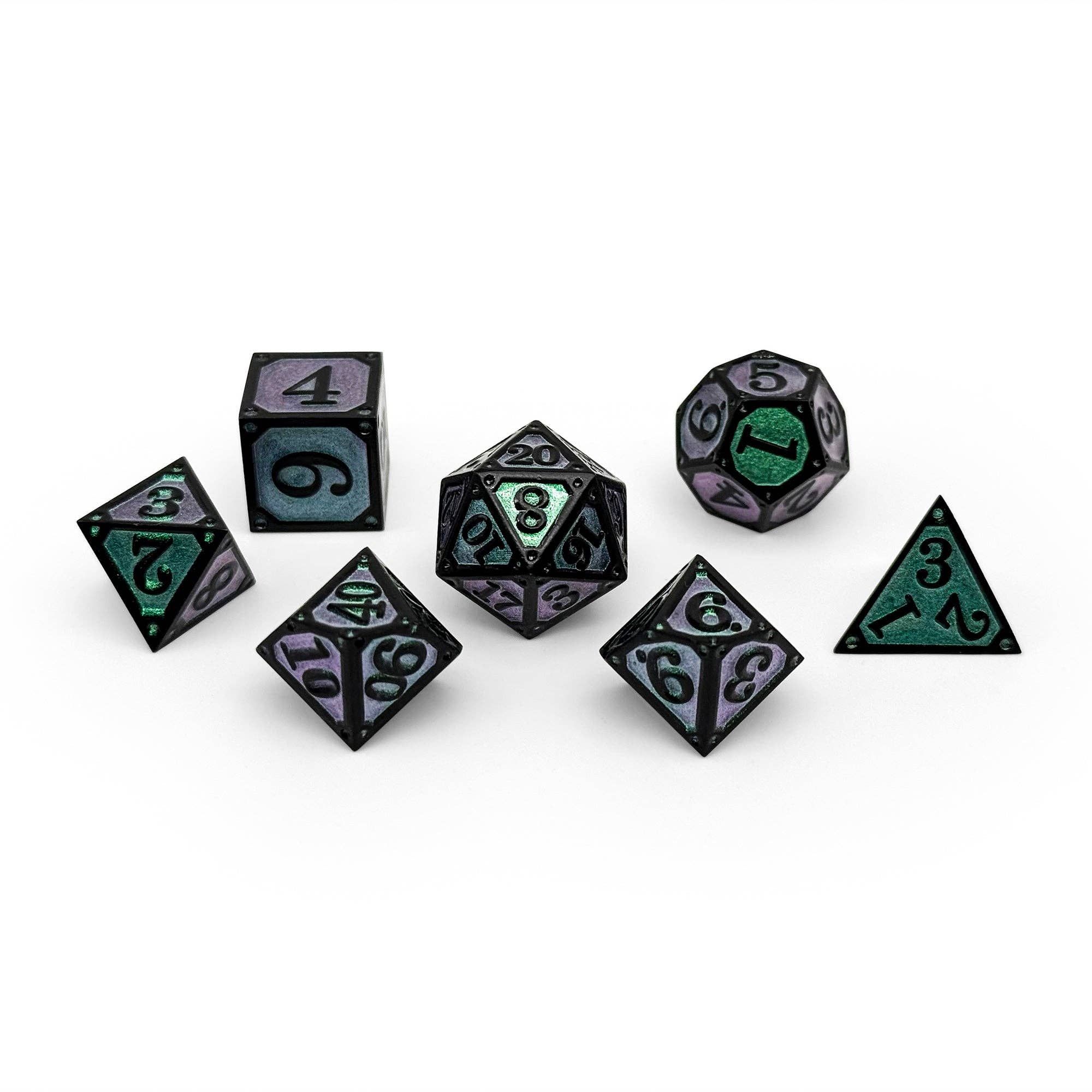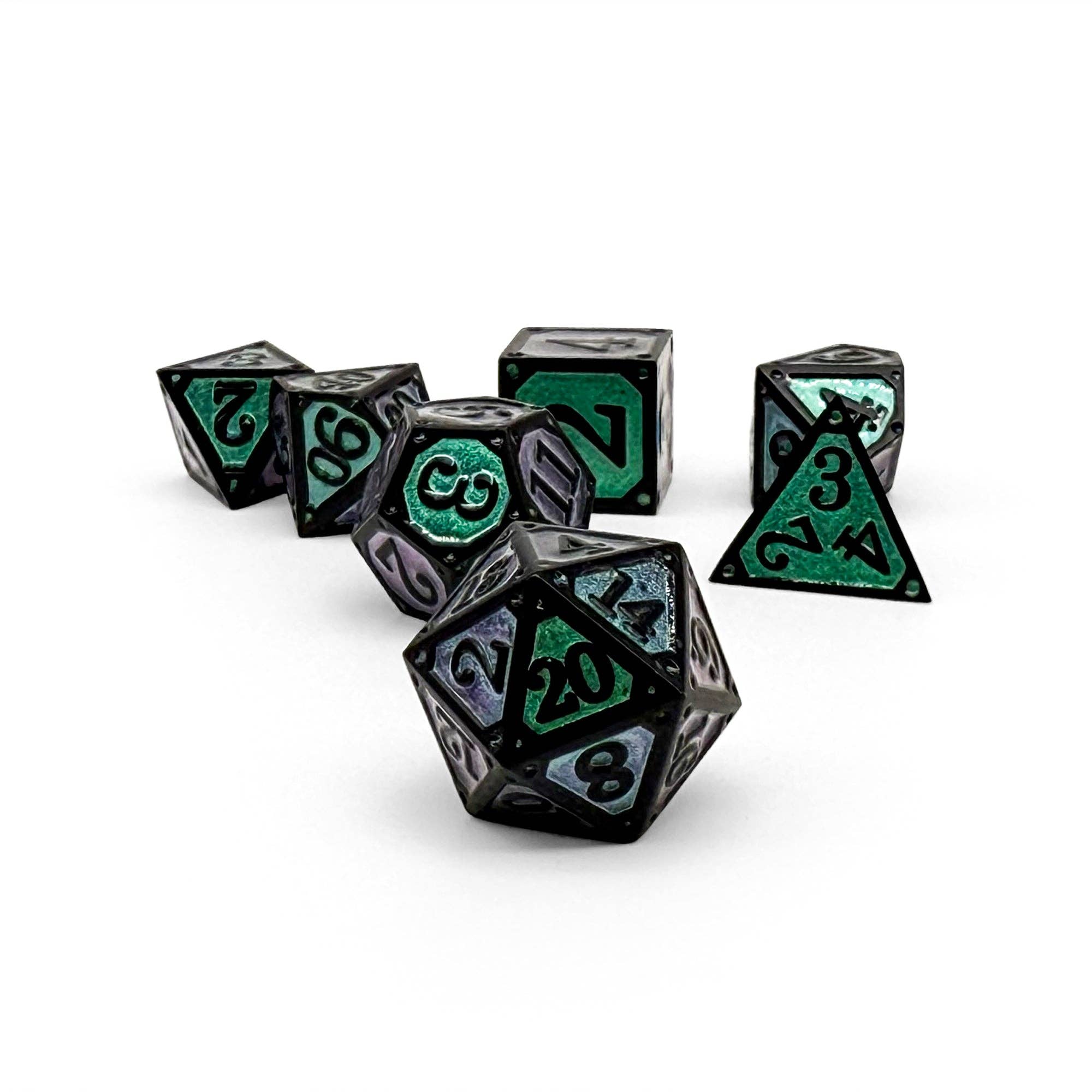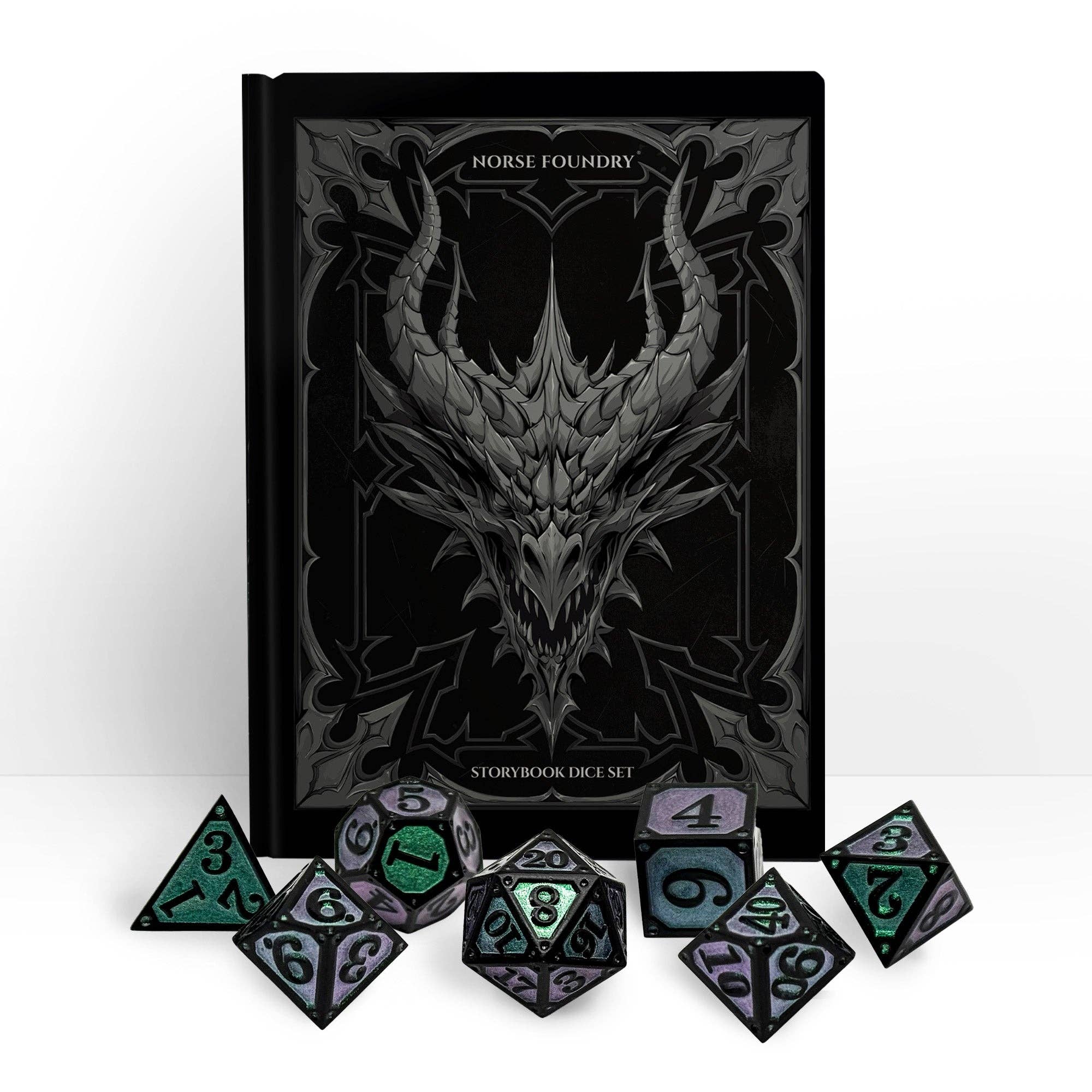 Beneath tangled canopies where sunlight dares not linger lies the Storybook – The Twisted Forest dice set. Cloaked in shadowy black and filled with a haunting transparent green, these dice evoke the mysteries of ancient woods where paths shift, roots writhe, and every roll may reveal friend or foe. Step carefully — for within these depths, fate itself is entwined.