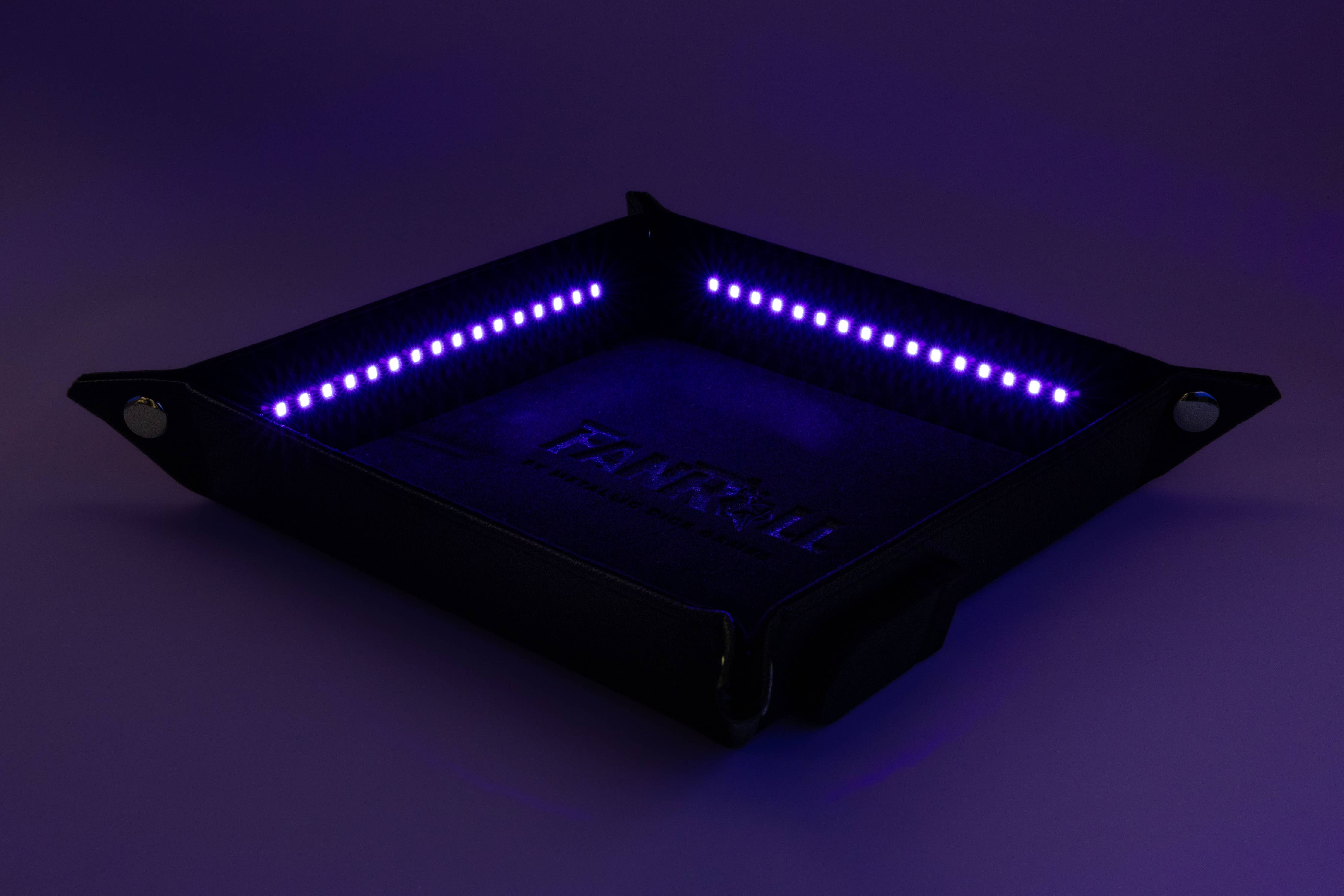 Introducing the newest technology to hit the tabletop, Shadow Light Dice Trays. These dice trays have black lights incorporated into the side of the tray to illuminate your tray. Each tray comes with a specialized D20 made to interact with blacklight and bring an incredible glow to your table. Tray's are built with auto-shutoff switches to save the batteries and these pair well with our Shadow Light Elixir Dice.