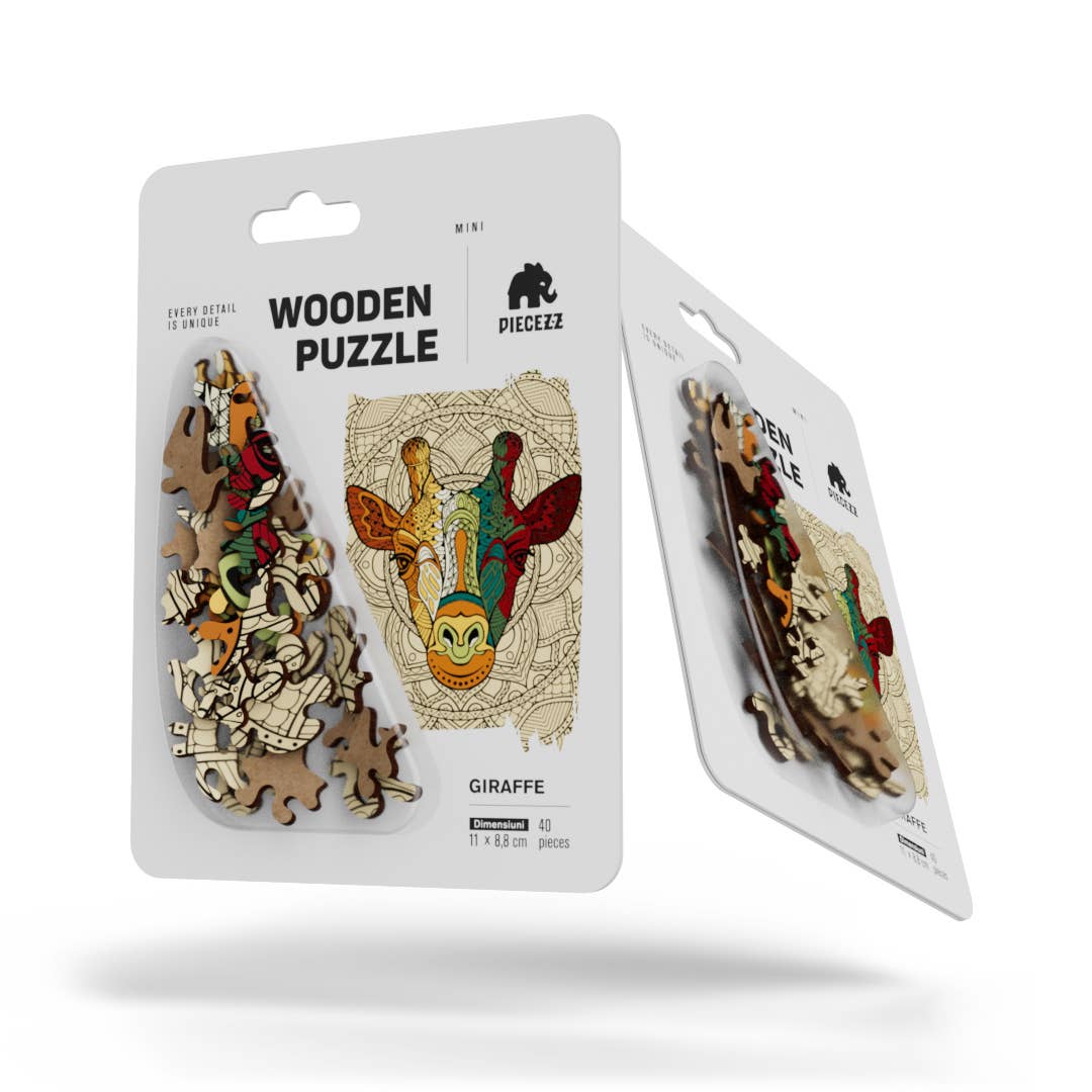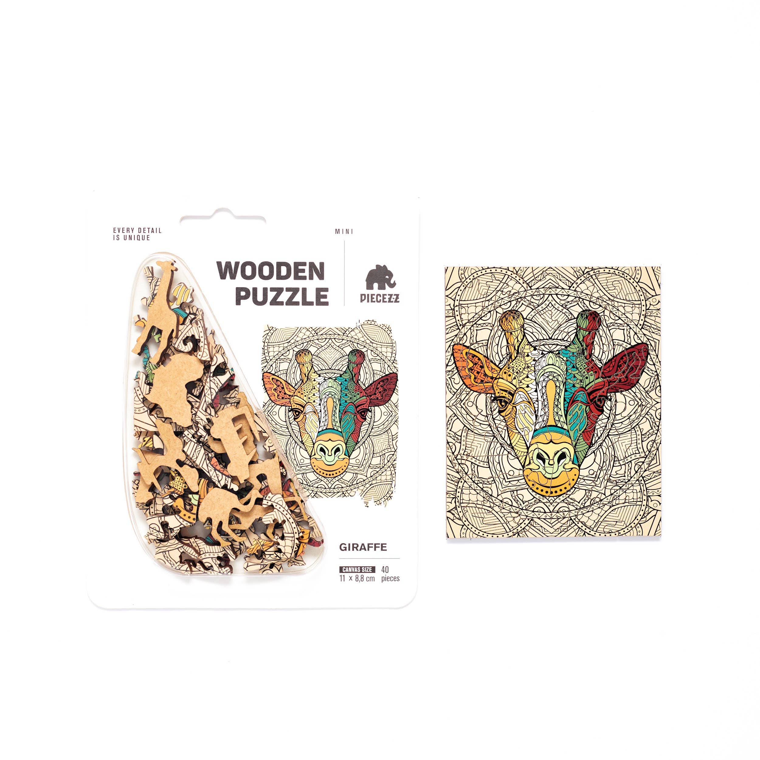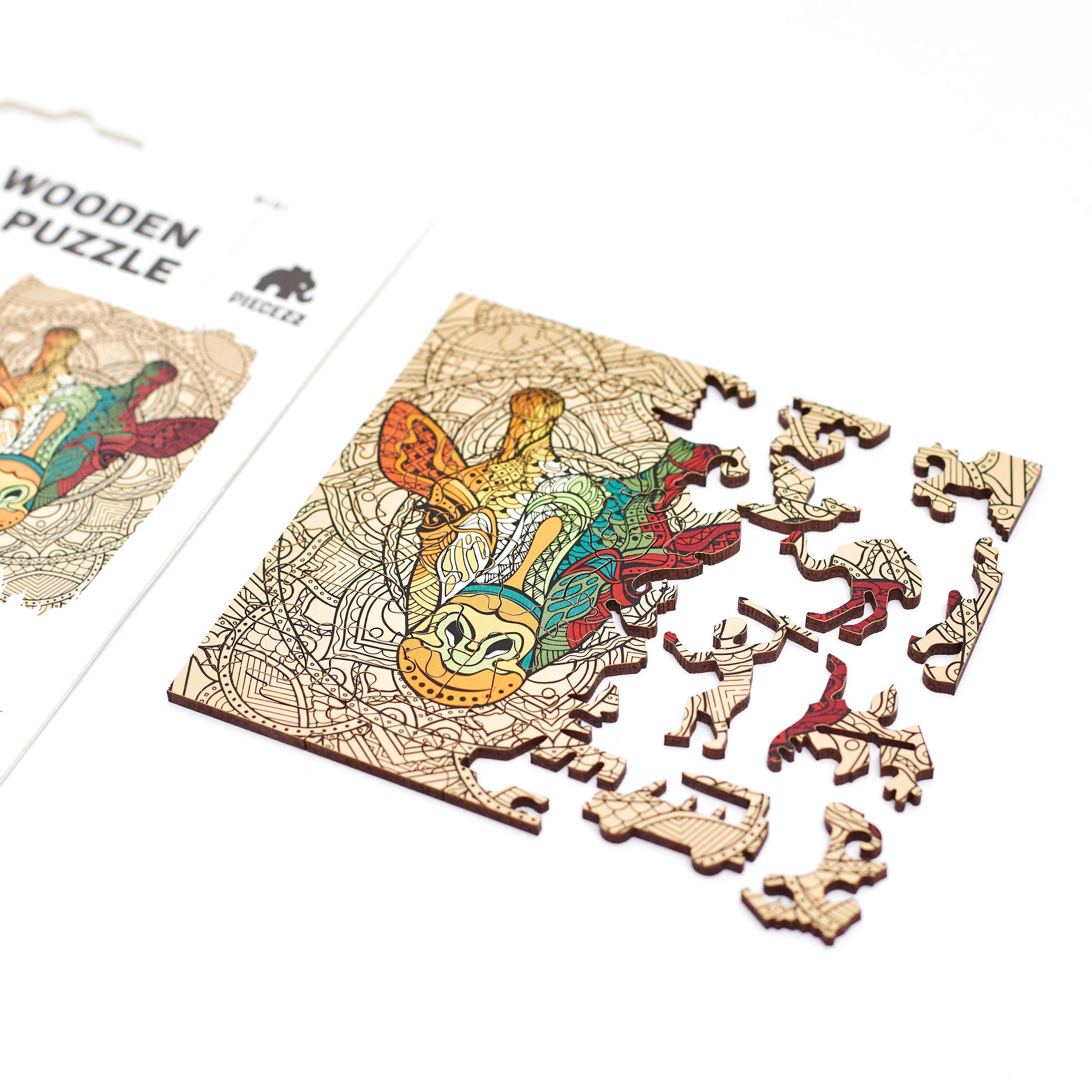 NEW! Our smallest puzzle yet - just 40 pieces! Perfect for on-the-go puzzle cravings! Would you like to assemble a puzzle with a giraffe? This animal is chosen by extraordinary personalities, whose main desire is to reveal their creative potential. If you choose this animal, that means that the most important for you is to touch beauty and reach the unknown. It all came together and the Piecezz mini-set with a giraffe is made special for you. The most important thing in our natural wooden jigsaw puzzles is the enjoyment of the assembly process. Let yourself relax and dive into the colorful world of the author's puzzles. Assemble a giraffe using twisting figurines of animals, plants, and mystical symbols. But if you can't assemble the drawing by yourself, then call your allies and loved ones for help!