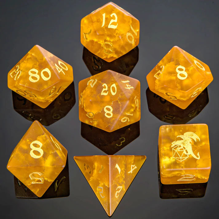 Dragon's Hoard Gemstone RPG Dice Set - Frosted Amber