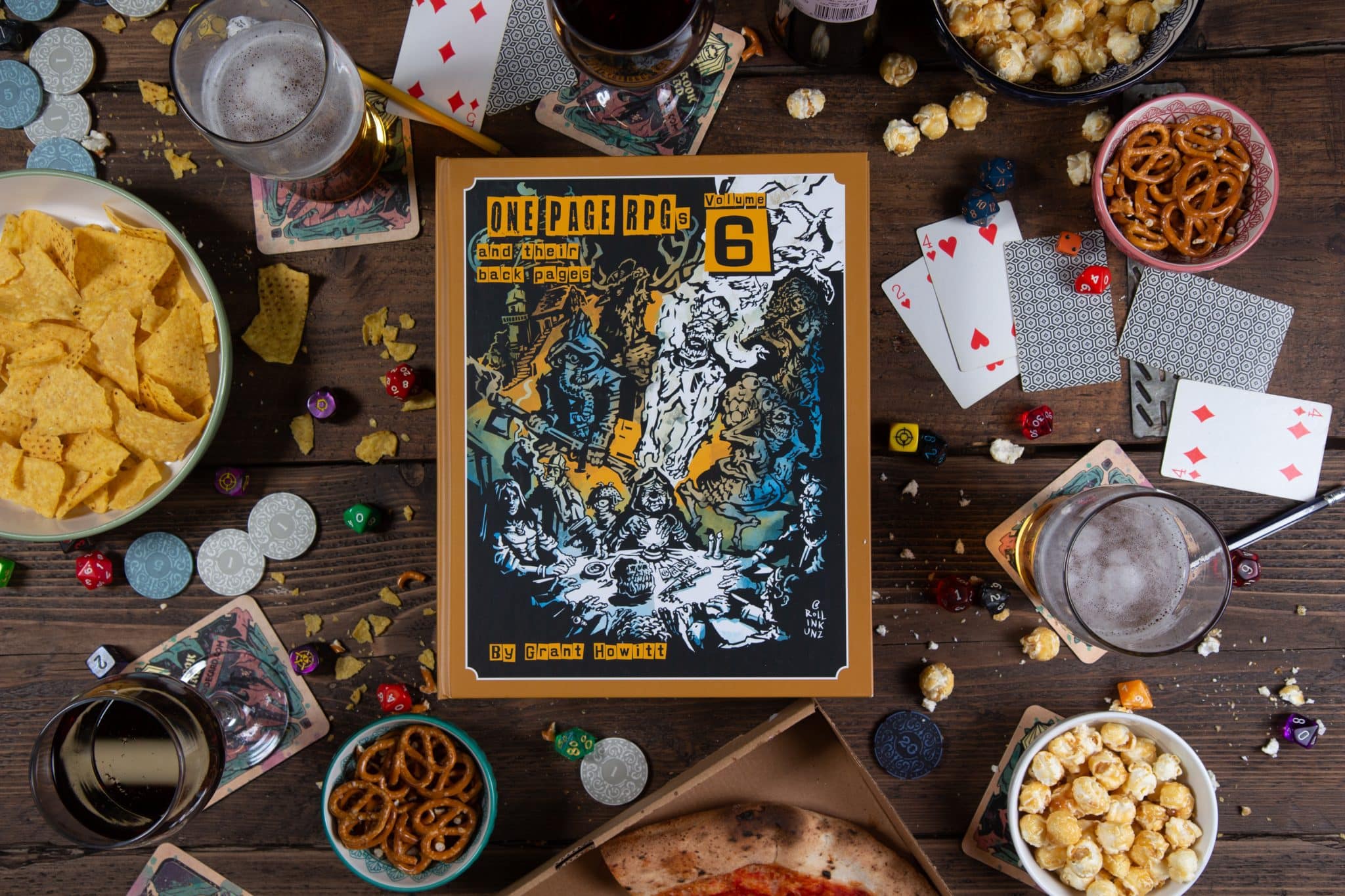 In 2016, Grant Howitt decided – flippantly – towrite a one-page roleplaying game every monthand release it for free online. Little did he knowthat the barely-intelligible pen-and-ink scratches he turned out would go on to define his career, andthe shape of roleplaying games, for years to come. Played by thousands of people all over the world, Grant’s one-page games run the gamut from strange to silly, daft to deadly serious, and powerfully original to potentially copyright-infringing. Each volume contains (at least!) 13 games in their original single-page format, complete with SECRET BACK PAGE material for every game that’s never been released online. Plus, where relevant, the longer games Grant and his collaborators have released are printed in full-colour, saddle-stitched booklets. Each game has been written, illustrated (sorry) and laid out entirely by Grant, unless someone else helped him, in which case it says so. As of 2024, all these volumes come in US Letter size, in a sturdy cardboard folder with a spine.