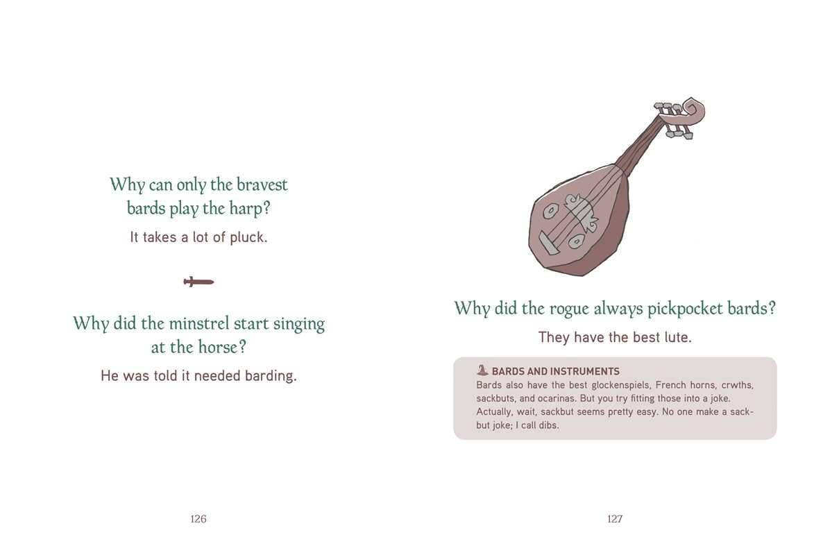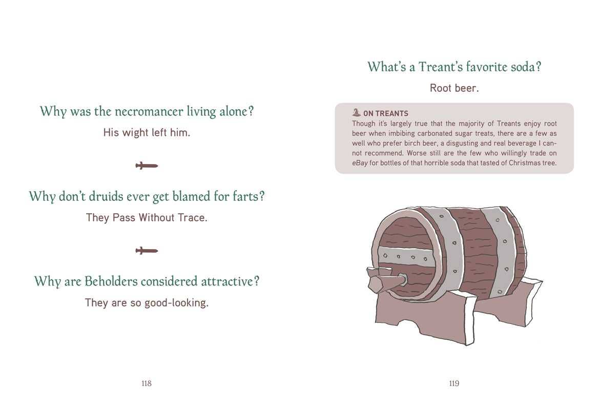 Laugh out loud at over 300 zingy one-liners and eye-rolling puns with this collection of tabletop-based humor, dedicated to the fun of RPGs like Dungeons and Dragons, Pathfinder, and more!