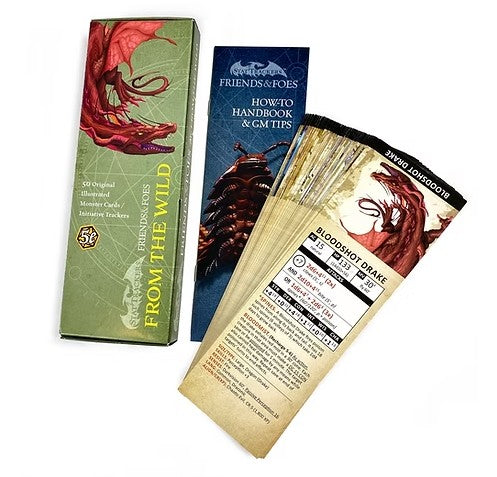 50 spectacularly-illustrated DnD monsters on dry erase friendly stat cards. Just fold them over the DM screen or prop up on the table for easy reference and tracking initiative. “From the Wild” contains our own creations for 5e / 2024 DnD – including a sea serpent, fantastic beasts, new humanoids, undead plants, deadly drakes, and many more. Surprise and challenge even the most veteran players with these unique creatures!