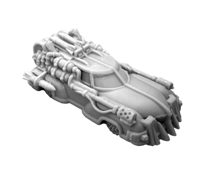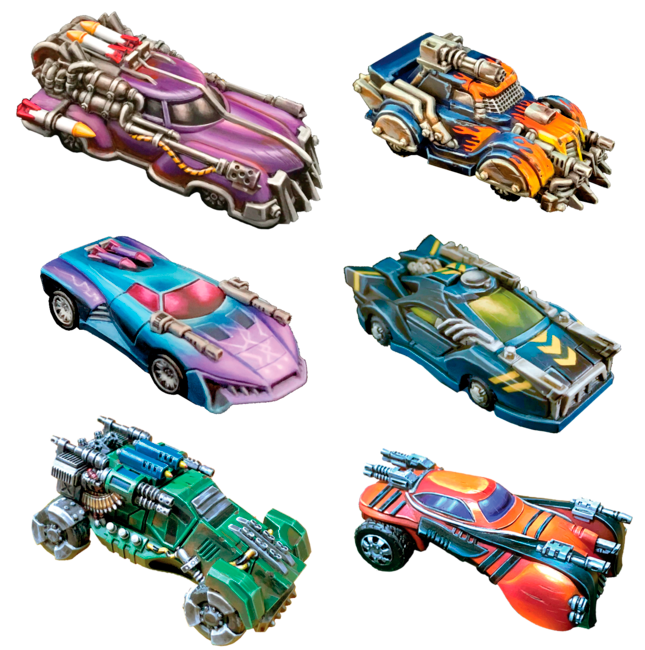 A complete redesign of the original game of autoduelling, Car Wars Sixth Edition plays faster and includes new plastic miniatures! Miniatures come pre-assembled and unpainted. This Starter Set has everything that two players need to start play. * Six unpainted miniatures: Dragon, Jackrabbit, Slipstream, Superflash, Goblin, and Boomerang * Two car bases (one red and one yellow) * Two dashboards (one red and one yellow) * Over 100 game cards * Four counter sheets (dashboard sliders, barrier and wreck tokens, two turning keys, and other assorted tokens) * Dice pack (20 dice: six yellow, four blue, three red, three green, two black, and two white) * Six double-sided vehicle record sheets * Rulebook Miniatures come pre-assembled and unpainted.