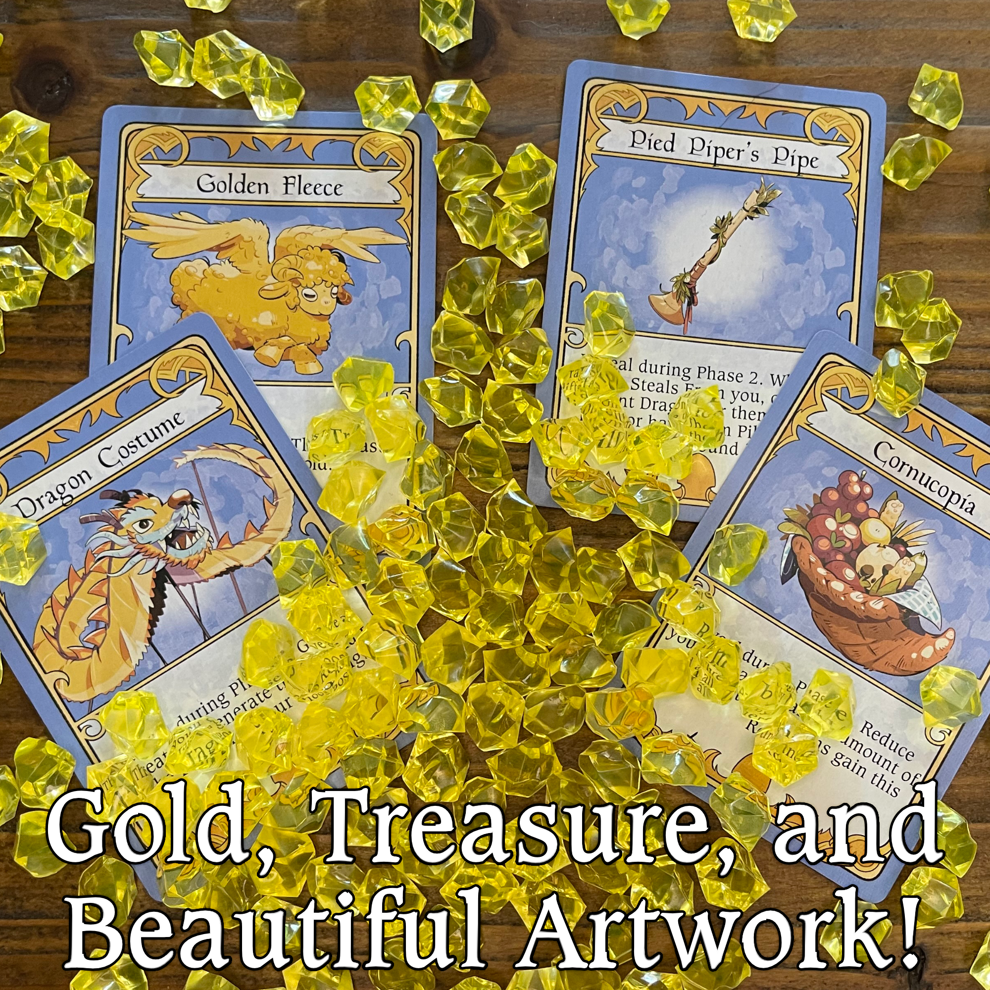 Pillage the Village is a fast-paced fantasy board game where players become dragons competing to steal the most treasure before the knight arrives. With simultaneous actions, bluffing, and mythology-inspired treasure cards, it’s quick to learn and full of surprises. Supports 2–6 players, ages 10+, with 20–30 minute playtime, perfect for families, casual gamers, and D&D fans.