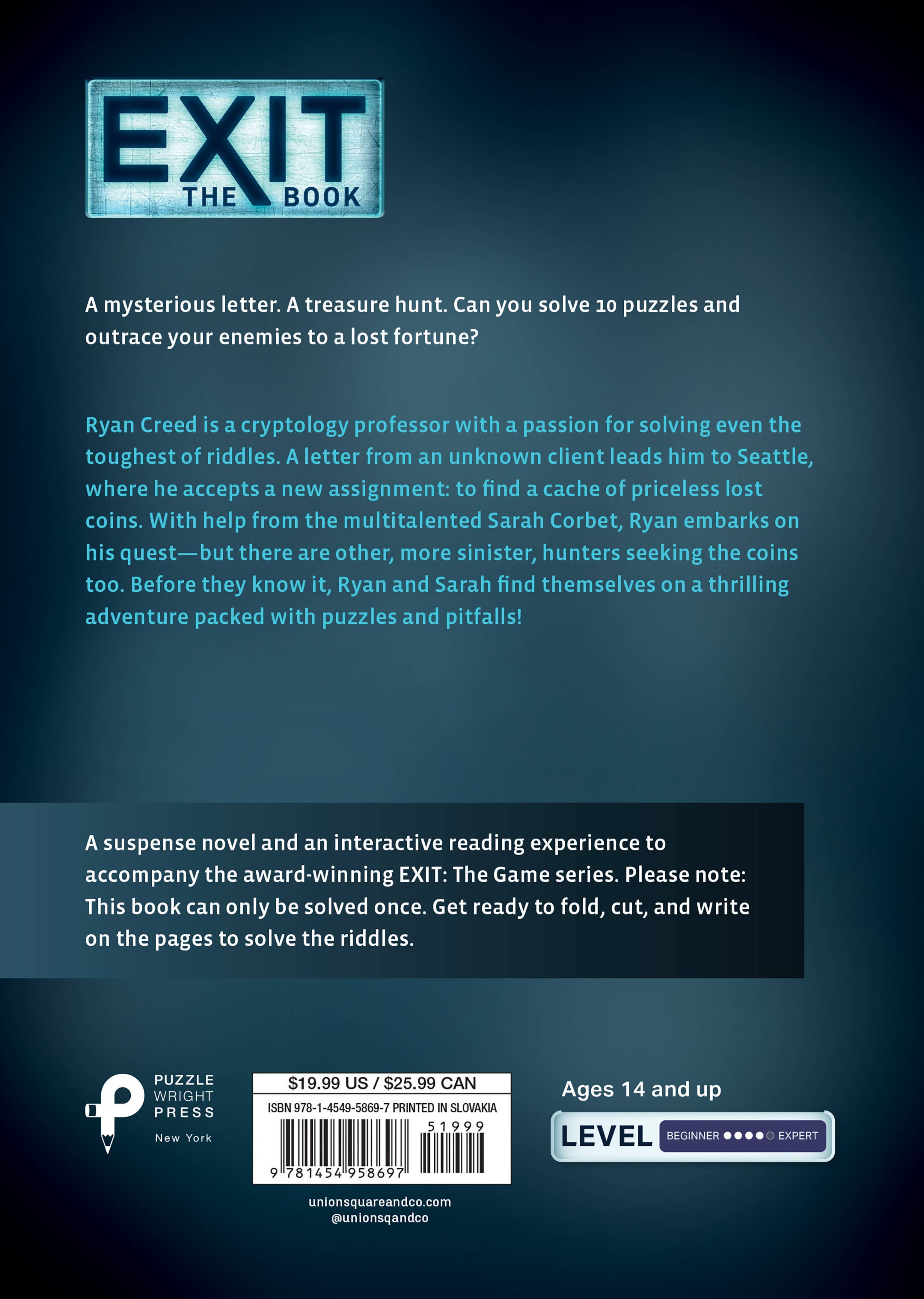 A mysterious letter. A treasure hunt. Can you solve 10 puzzles and outrace your enemies to a lost fortune.   Ryan Creed is a cryptology professor with a passion for solving even the toughest of riddles. A letter from an unknown client leads him to Seattle, where he accepts a new assignment: to find a cache of priceless lost coins. With help from the multitalented Sarah Corbet, Ryan embarks on his quest—but there are other, more sinister, hunters seeking the coins too. Before they know it, Ryan and Sarah find themselves on a thrilling adventure packed with puzzles and pitfalls! Paperback Book With Flaps; 6 X 8 1/2 inches; 192 pages.