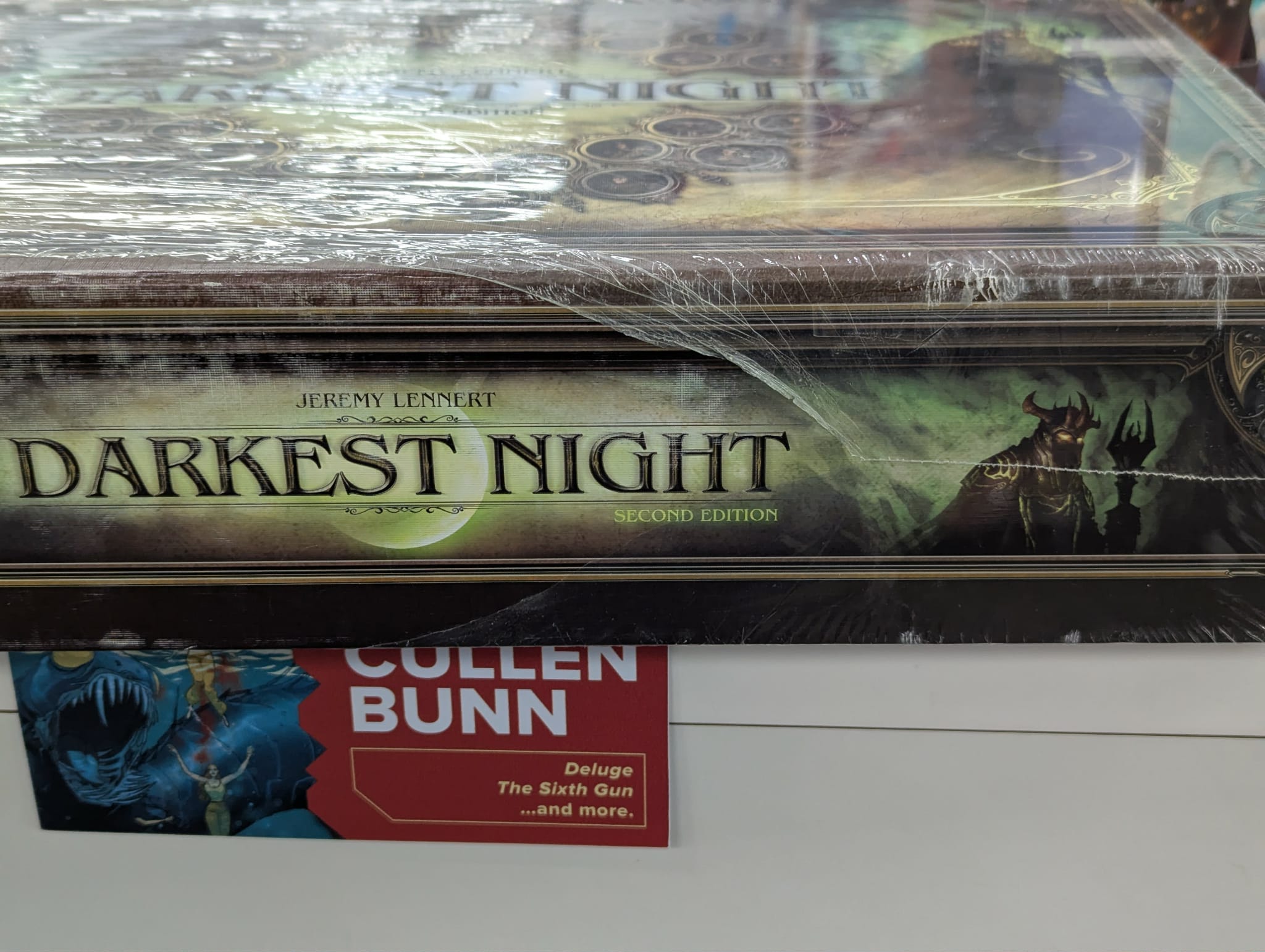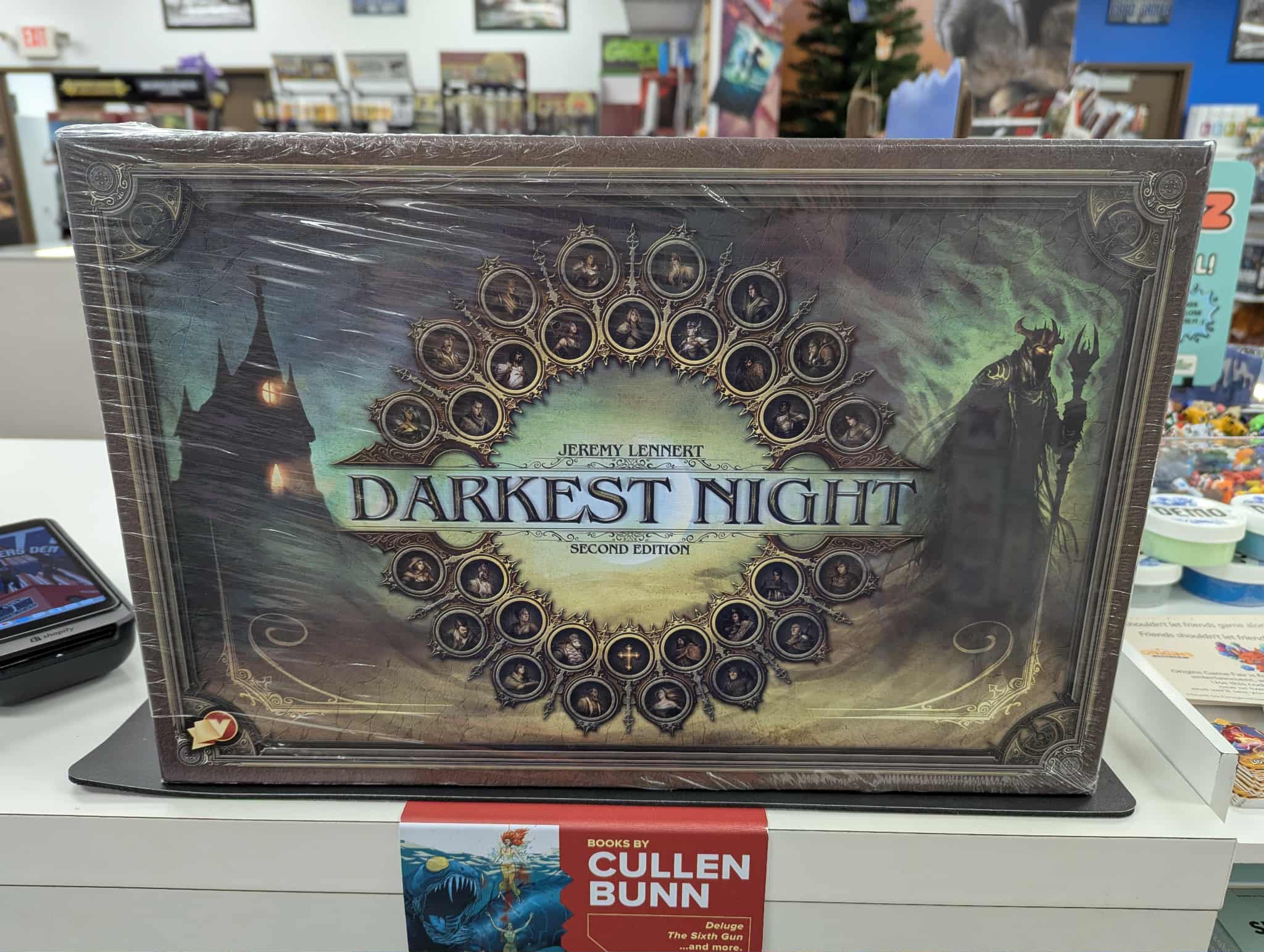 Darkest Night, by designer Jeremy Lennert, is a fully-cooperative board game set in a kingdom broken under a Necromancer’s shadow. Each player takes on the role of one of the kingdom’s last heroes, each with a unique set of special abilities, just as they hatch a plan to save the realm. Can you save the kingdom from darkness? Do you have the courage, the cunning and the will to withstand the necromancer and his forces? Strategize, plan and bring out the best of your abilities to end our Darkest Night!